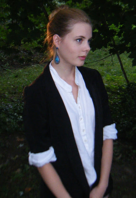 Today I walked into my closet wanting to wear a maxi skirt and ended up with this. Nothing at all what I had in mind, but it works! I love pairing neutrals with unexpected pops of color, as done here with the purple shorts and turquoise earrings. I've had these shorts for a while and could never seem to find a way I really liked wearing them. But I think I found it here! Also I got this tunic/shirt two years ago at Goodwill for a pirate costume...I guess I've discovered how to recycle what I wore for Halloween. great. I hope everyone's having a lovely week, I am quite excited today because I was offered a job I was hoping for!